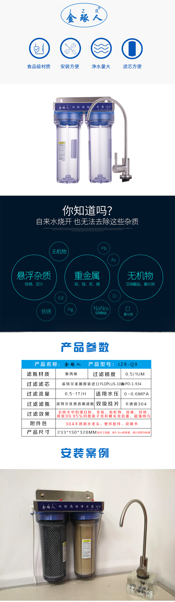 全透明滤瓶,水质污染情况可视,无需插电、安装简单、0废水、滤瓶带有排气泄压按钮,很容易排出滤瓶里面的空气.采用滨特尔美国原装进口滤芯、有涉水卫生许可批件!