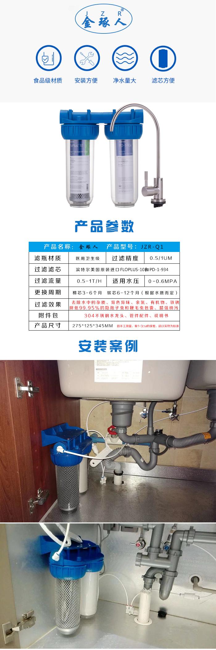 金琢人净水器,金琢人Q1滤瓶,滨特尔滤芯,Q1过滤滤芯,Q1过滤器,4分口前置滤瓶